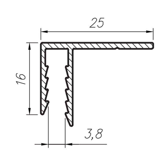 Цена на Алюминиевый профиль F образный Fp25